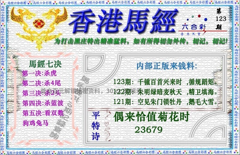 123期:黄大仙论坛【香港马经】